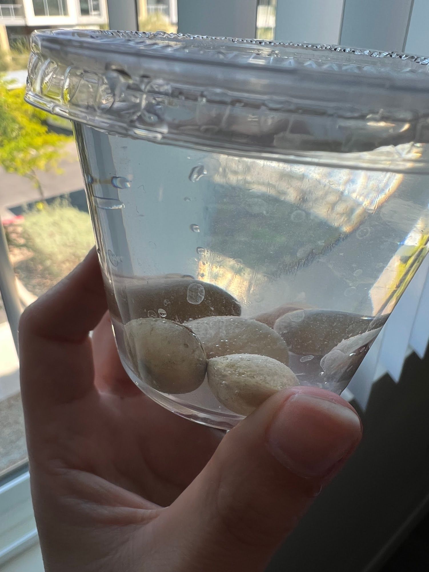 You can already see the radicle growing out of the ginkgo nut in the second picture. This was 5 days after being placed in the container.